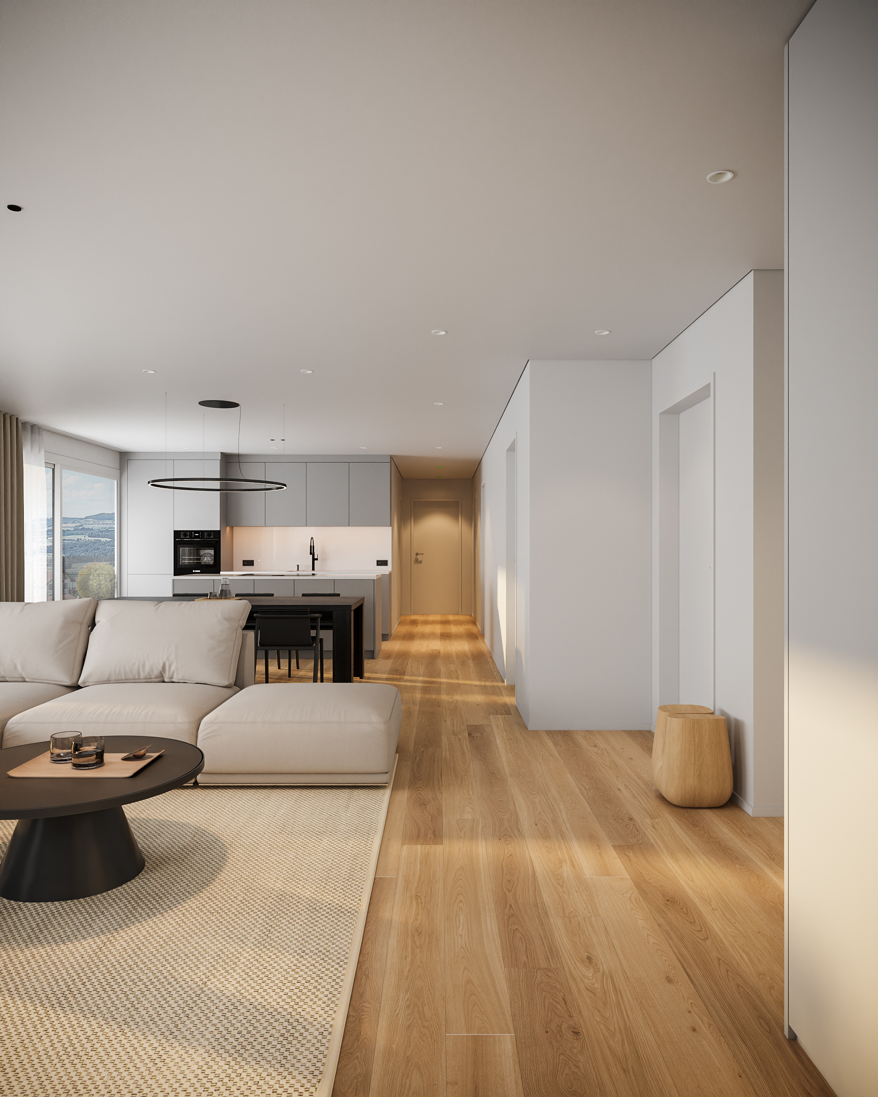 Die Wohnungen überzeugen mit modernen Grundrissen und hochwertigen Materialien. Offene Wohnkonzepte schaffen ein lichtdurchflutetes Ambiente, das Funktionalität und Wohnqualität vereint. Natürliche Farben und stilvolle Details verleihen den Räumen eine elegante Atmosphäre, in der sich Bewohner sofort zuhause fühlen.